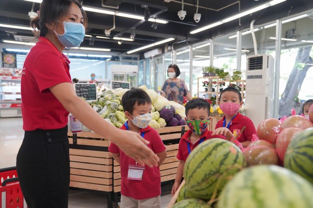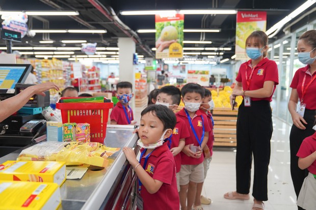 Mỗi chuyến tham quan, trải nghiệm với gần 50 bé, nhưng bầu không khí tại siêu thị lại vô cùng trật tự. Bởi lẽ, các con được hướng dẫn di chuyển theo hàng, đi nhẹ, nói khẽ và tôn trọng mọi người xung quanh.