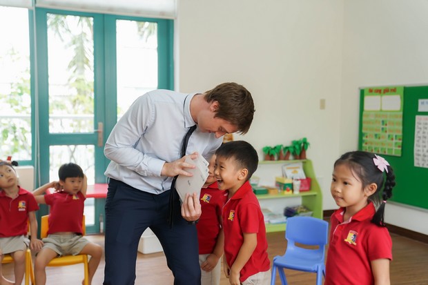 Giờ học tiếng Anh mang lại nhiều hứng thú cho các bạn nhỏ.