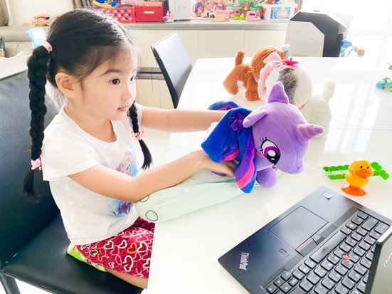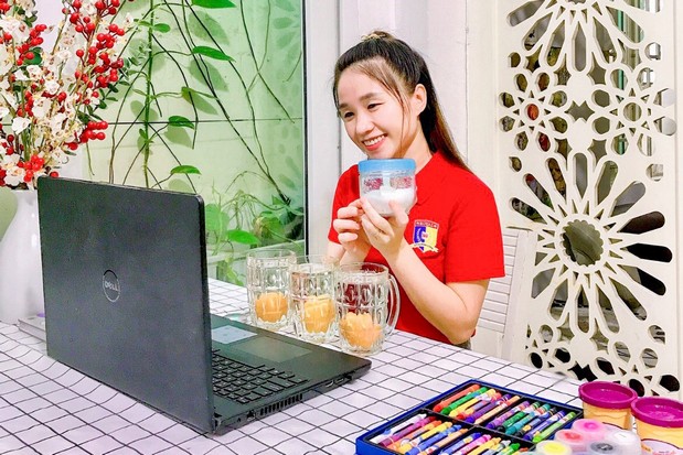 “Mỗi ngày bé đều dậy sớm và ăn sáng thật nhanh để được gặp thầy cô và các bạn. Trong thời gian bé ở nhà, ba mẹ vẫn luôn cùng con vui chơi, học tập, và khi được vui chơi cùng thầy cô và các bạn, con sôi nổi và hào hứng thấy rõ. Nhà trường luôn đổi mới các hoạt động để mỗi ngày tham gia con đều cảm thấy thích thú. Thấy con ở nhà nhưng vẫn được giao lưu và củng cố kiến thức, kỹ năng, ba mẹ cũng yên tâm” – Chị Trâm bày tỏ sự phấn khởi khi thấy con thích thú hợp tác dù cô trò chỉ giao tiếp với nhau qua màn hình.
